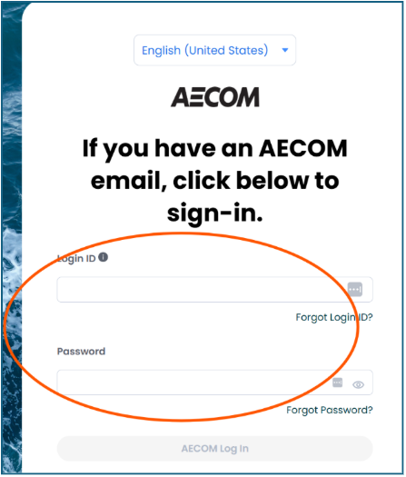 - Enter your AECOM employee ID (Login ID), and your password to gain access.